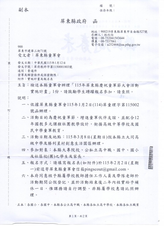 115年屏東縣慶祝童軍節大會活動報名表.docx